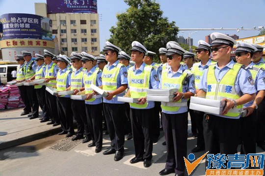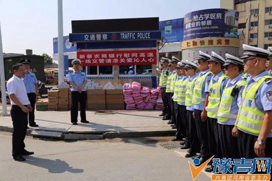 夏日炎炎,骄阳似火,新蔡交警战高温、斗酷暑,奋战在岗位上。7月31日上午,新蔡农商银行工会开展“夏日送清凉”慰问活动,为坚守在高温酷暑一线的交警送去了香皂、洗衣粉、风油精、毛巾、和藿香正气丸,等防暑降温物品。