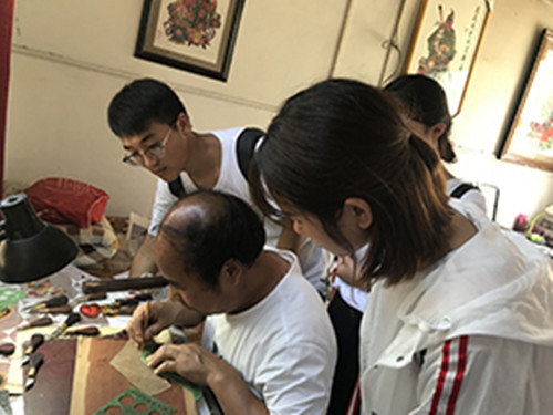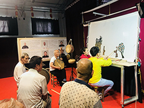 隔日上午,团队来到了中国皮影艺术雕刻鉴定专家汪天稳老先生故里,其子汪先生取出家族亲自精雕细琢的皮影成品及各种雕刻上色工具,并向他们逐一介绍各中门道,团队成员被如此丰富的文化盛宴震撼。下午,实践队员赶到皮影文化生态园参观刘华老先生、吕崇德老先生等德高望重的国家级老艺人的皮影表演。看到大多已年过古稀的老人们仍在坚守这门艺术,只为了能够将这一非物质文化遗产传承下去,团队成员深刻意识到文化传承的重大意义,更加坚定肩上的责任与使命。